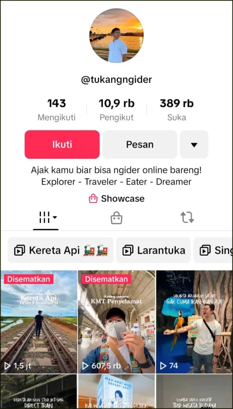 Nama saya Andrew pemilik akun @tukangngider. Saya adalah Vlogger dan Fulltime Traveler yang sudah melakukan travel ke 30 provinsi di Indonesia dan beberapa negara di Asia.